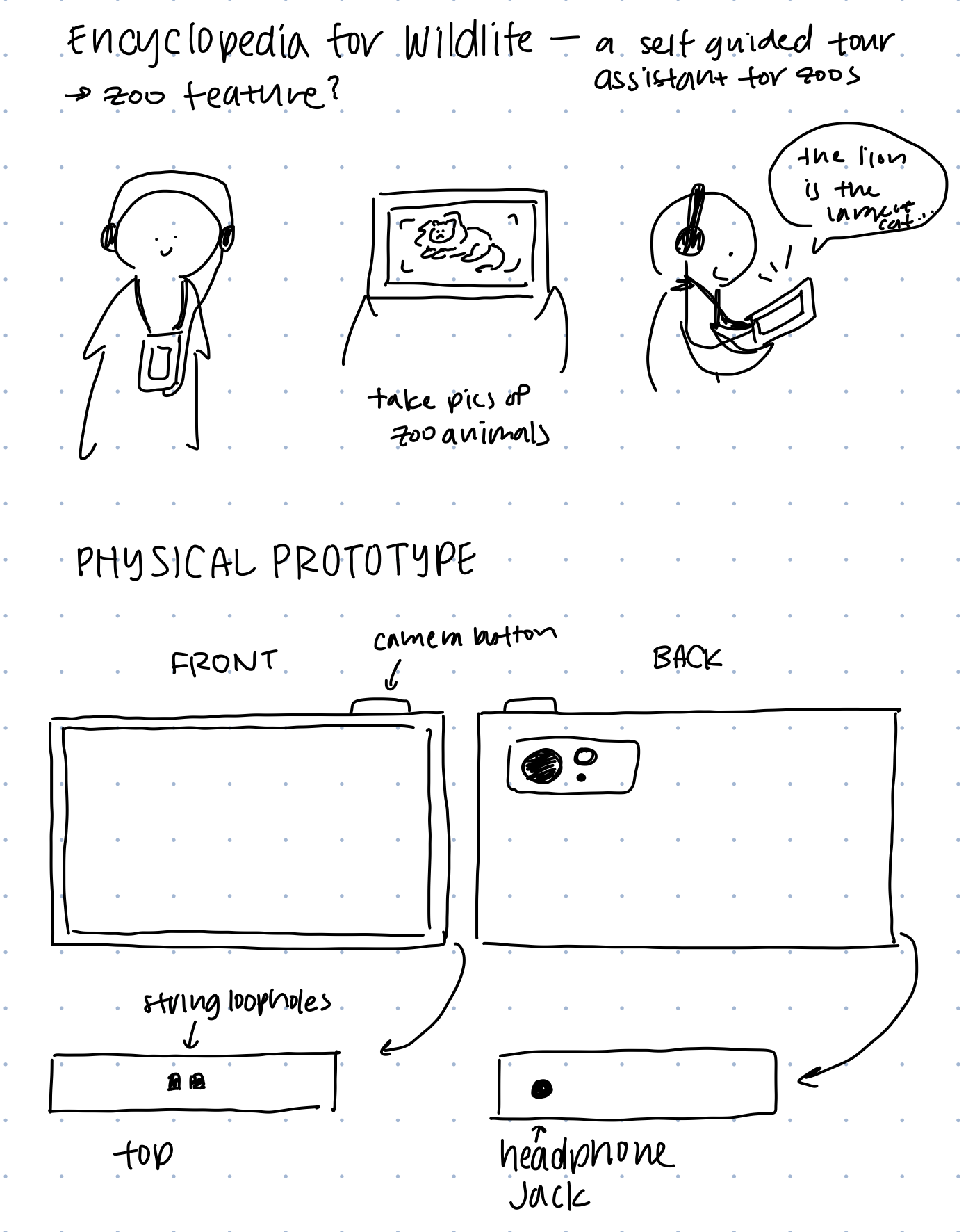 After the test, my participant mentioned that this device reminded her of an audio tour guide provided from a museum. She especially liked the camera and interface feature of the prototype and thought that it added a nice touch to the audio tour guide experience. Overall, I think that this prototype could help provide a more immersive experience for visitors at zoos.